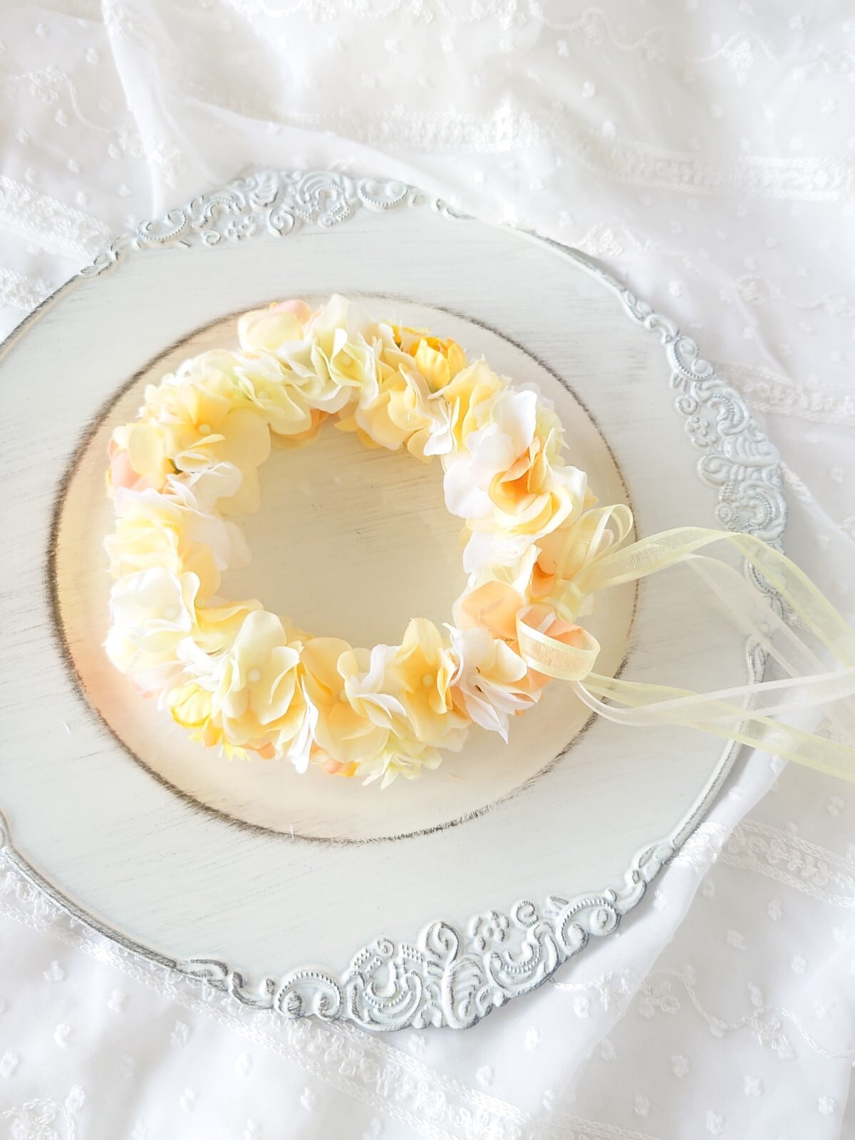 ふんわりかわいい「やわらか花かんむり」です。