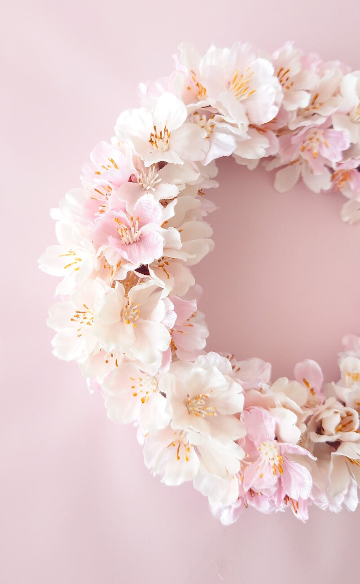 エドヒガンザクラのような薄いピンクの2種類の桜を使用しました。